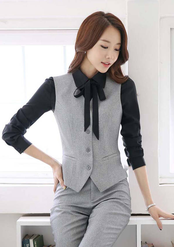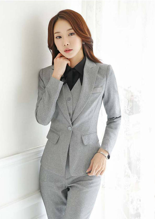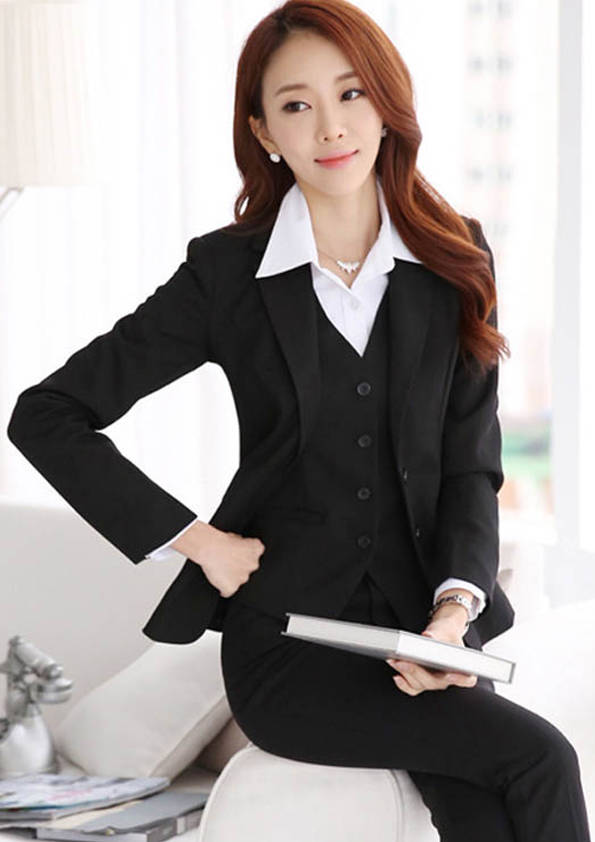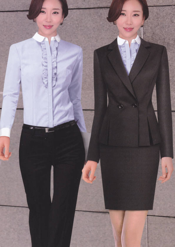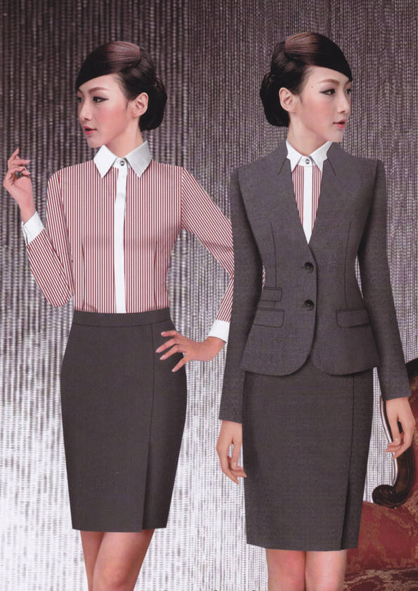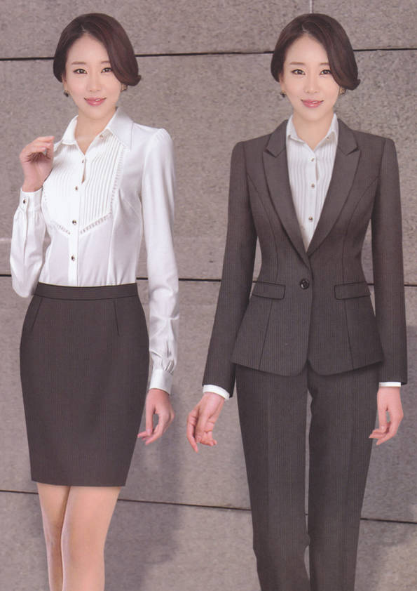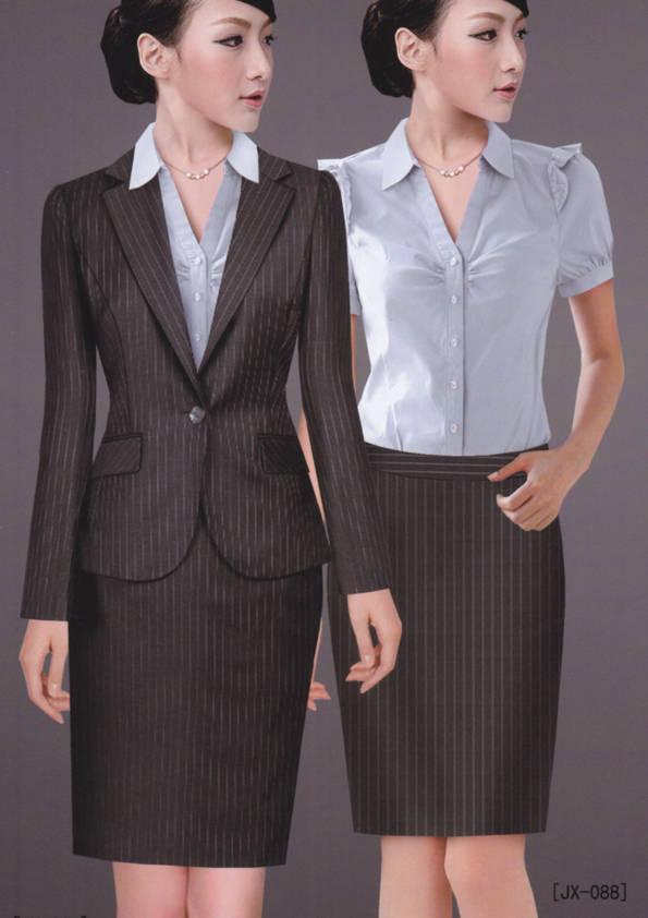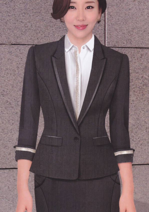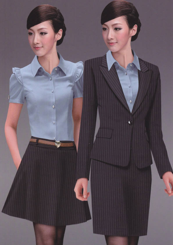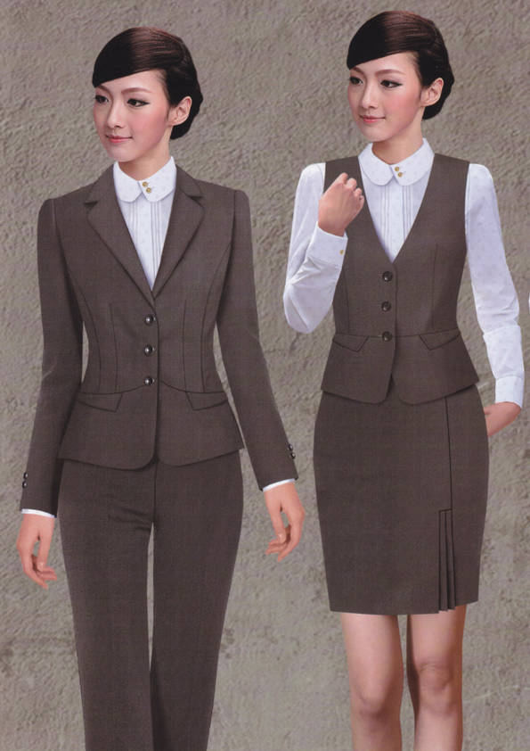 女式正裝是以西服套裝為準(zhǔn),以西褲、裙或西服套裙等在正式,嚴(yán)肅場(chǎng)所的著裝。在這三種類型中,每一種都要考慮其顏色和面料。而西服套裙是女性的標(biāo)準(zhǔn)職業(yè)著裝,可塑造出強(qiáng)有力的形象。女性的職業(yè)服裝比男人更具個(gè)性,最佳顏色是黑色、藏青色、灰褐色、灰色和暗紅色。精致的方格、印花和條紋也可以用于正式場(chǎng)合。